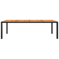 $323.09Combining both style and function, this garden table is the centerpiece of your garden, patio or any other living space. Featuring a powder-coated steel frame wrapped with poly rattan, the outdoor table is sturdy and stable. Its tabletop is made of solid acacia wood, a hardwood with dense grains. This beautifully-designed patio table is stable, durable and eye-catching. Additionally, the exquisite craftsmanship and beautiful wood grains make every piece slightly different from the next. Note: In order to extend the life of your outdoor furniture, we recommend you to clean it regularly and do not leave it outdoors without protection unnecessarily.Clean: Use a mild soap solution.Storing: If possible, store in a cool, dry place indoors. If the product is stored outdoors, protect it with a waterproof cover. Wipe and dry the excess water or snow from flat surfaces after a rain or snowfall. Allow sufficient air circulation to avoid moisture-related damage.