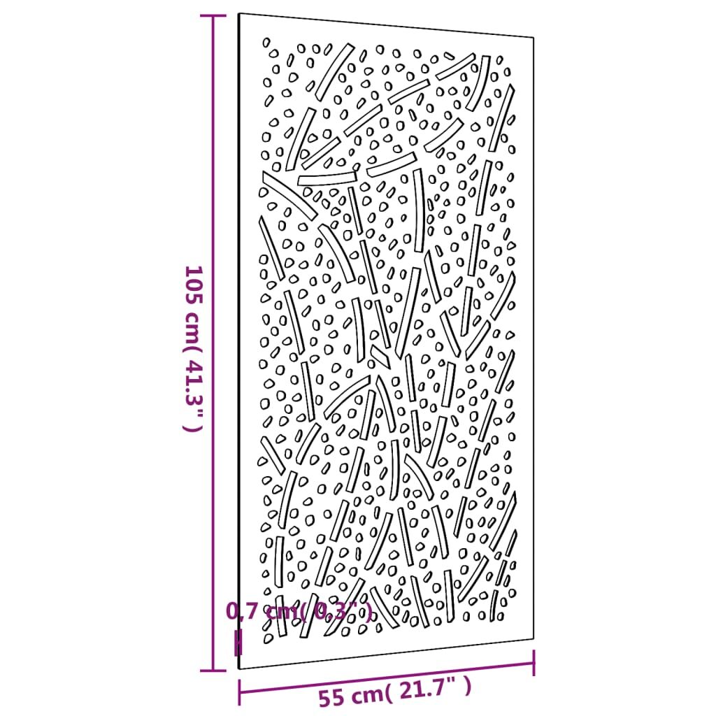 NOW $72.89Turn a blank wall or fence into a masterpiece with this garden wall decoration. Durable material: Corten steel, also known as weathering steel. This is anti-corrosive by its very nature. It develops a rusty protective layer against corrosion when first exposed to atmospheric conditions. Thus, you don't need to paint it. This can help you save on maintenance and repair costs. The distinctive brown colour on the corten steel will surely be an eye-catcher. Finally, weathering steel is exceptionally durable and will stand up to the test of time.Exquisite design: The metal wall decoration adopts a hollow design of leaves pattern, creating a natural atmosphere in your garden.Easy installation: The outdoor wall decoration is easy to install with the mounting holes on the back. Good to know:This product is not rusted yet and has a normal metal colour when you receive it, but rust will develop over time. You could speed up the rusting process by spraying it with soap water and salt water. To keep your clothes stain-free, avoid contact with the developing rust layer.