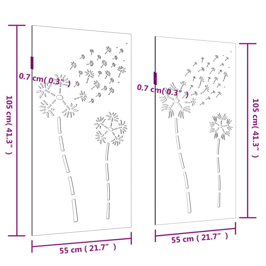 NOW $126.89Turn a blank wall or fence into a masterpiece with these garden wall decorations. Durable material: Corten steel, also known as weathering steel. This is anti-corrosive by its very nature. It develops a rusty protective layer against corrosion when first exposed to atmospheric conditions. Thus, you don't need to paint it. This can help you save on maintenance and repair costs. The distinctive brown colour on the corten steel will surely be an eye-catcher. Finally, weathering steel is exceptionally durable and will stand up to the test of time.Exquisite design: The metal wall decoration adopts a hollow design of flowers pattern, creating a natural atmosphere in your garden.Easy installation: The outdoor wall decoration is easy to install with the mounting holes on the back. Good to know:This product is not rusted yet and has a normal metal colour when you receive it, but rust will develop over time. You could speed up the rusting process by spraying it with soap water and salt water. To keep your clothes stain-free, avoid contact with the developing rust layer.