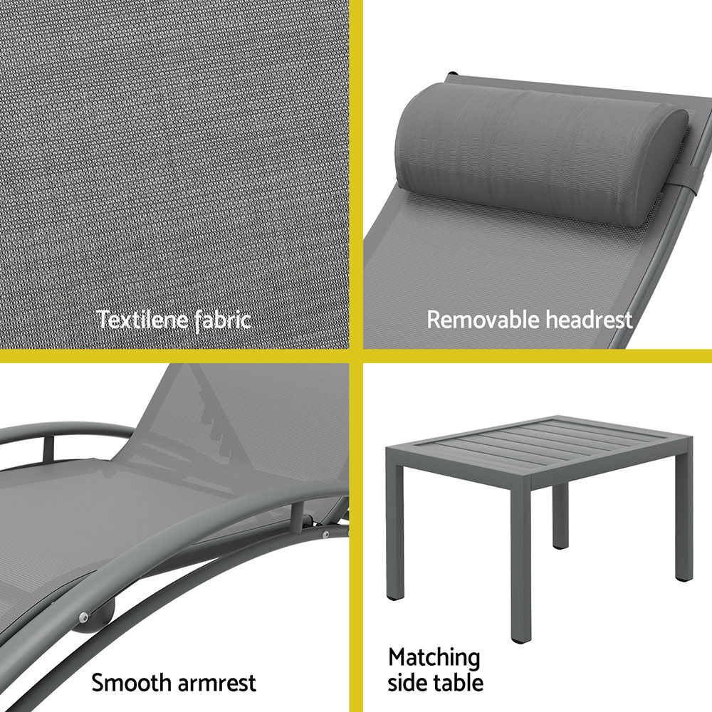 NOW $262.21Make the most out of every sunny day with a Gardeon Sun Lounger. The durable steel frame is designed to withstand the wind, rain and shine gracefully, and the premium textilene fabric is comfortable as well as weather and UV-resistant. The slender profile is designed to please, with 5 adjustable backrest settings offering you the perfect position to rest and relax. The padded headrest is adjustable and removable so you can achieve your ideal level of comfort. Best of all, the lounger is easily assembled and can be used anywhere such as the beach, the park, poolside or even indoors. Have more fun in the sun with a Gardeon Sun Lounger.