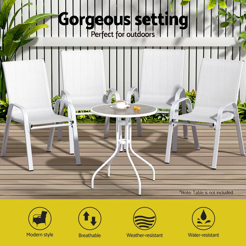 Whether you're hosting an outdoor intimate dinner party or barbeque night for your friends or family, the Gardeon outdoor stackable chair set is perfect to design a gorgeous outdoor setting that will wow your guests. The chairs are stackable, which makes for convenient and easy storage when not required. Designed for years of enjoyment, the chair set boasts classic looks and are made from premium textilene fabric and sturdy metal frame with durable powder coating. The anti-slip feet and good weather-resistance also makes them quite desirable. You can also pair this chair set with our sturdy and beautiful matching table to create a harmonious look.