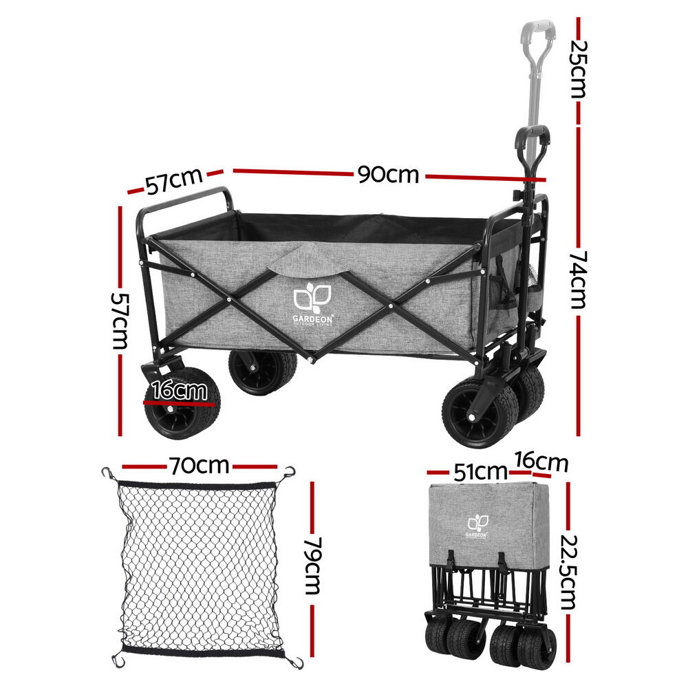 Introducing our versatile Gardeon garden cart: a multipurpose trolley for gardening, shopping, and outdoor adventures. With a sturdy steel frame, 360 rotating wheels, adjustable handle, and spacious interior, it's perfect for all your needs.