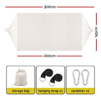 $30.59Relax in style with the Gardeon Hammock Bed, designed for ultimate comfort and durability. This lightweight and easy-to-carry hammock features high-strength cotton ropes and wear-resistant knots, making it perfect for both indoor and outdoor use. With the capacity to support two adults, it's the ideal choice for any lounging spot.