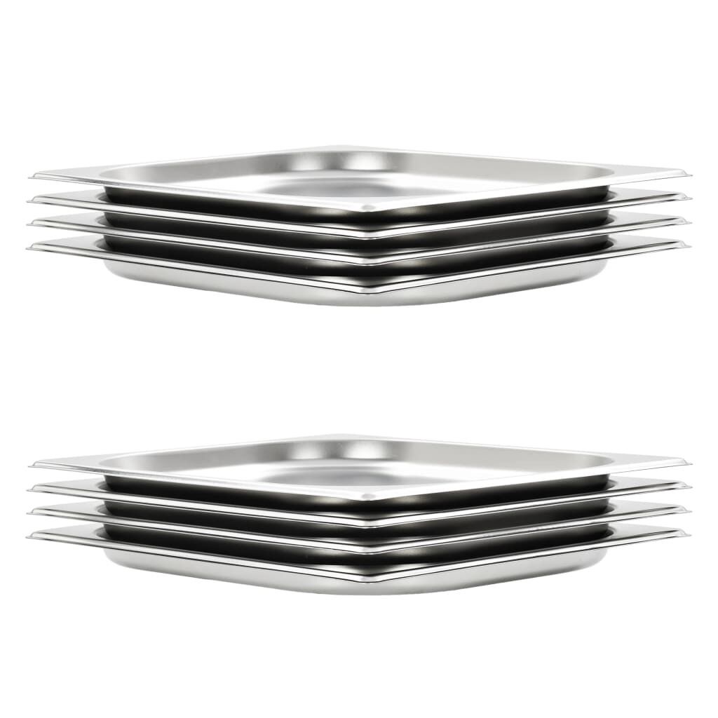 These stackable Gastronorm containers will be great additions to your kitchenware. Made of strong stainless steel, the steam table pan has a solid construction and is easy to clean.The hardwearing material makes it scratch-free and easy to maintain. The food pan features the standard Gastronorm dimensions, thus allowing universal use and a wide range of combinations. Consequently, it fits perfectly in all your professional kitchen cabinets and equipment like bain-marie, chafing dishes and salad bars. The cookware is stackable and can be hidden away to save space, therefore it is very practical and ideal for using in restaurants, hotels, parties, as well as at home. Delivery includes 8 pans.