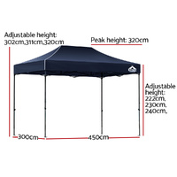 Featuring high density, long lasting PU-coating oxford fabric with effective UV and water repellent treatments, this INSTAHUT 3X4.5 Pop Up Gazebo provides a lovely ground and canopy coverage of 450 x 300cm. It is perfect for all your upcoming outdoor activities, as a sunshade station as well as a shelter for unexpected rains.