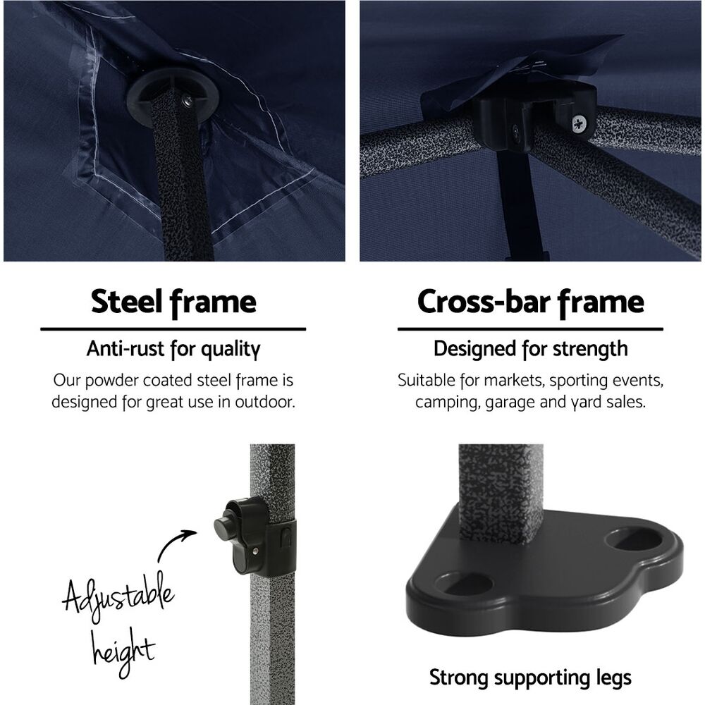 The INSTAHUT gazebo has 3 adjustable height levels to suit different height needs. It is ideal for markets, sporting events, camping, garage and yard sales, school events, trade shows and many more.