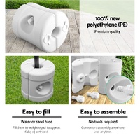 Featuring a convenient pack of 4 gazebo base pods, simply attach these pods to the bottom of your gazebo legs; they will increase the stability of the gazebo. These gazebo base pods are ideal when pegs cannot be used on the hard surfaces. Extremely easy to set up with no tools required; each pod comprises of 2 halves secured together by an oversize moulded thumb screw. The pods can be filled with either water or sand.