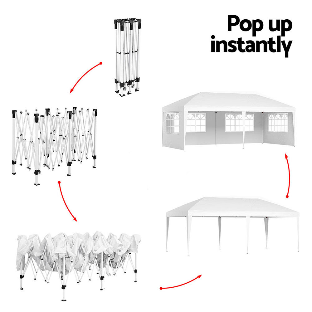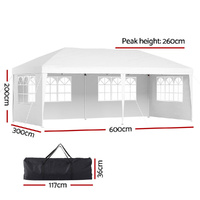 NOW $224.08Escape the sun and rain in style with this versatile gazebo! This spacious shelter boasts a generous 300 x 600cm footprint, providing ample shade and coverage for outdoor gatherings. The UV-resistant and waterproof canopy keeps you protected from the elements, while the sturdy legs and struts ensure a stable and secure structure. Quick and convenient Velcro attachments make assembly hassle-free, and the included 4 window panels allow you to enjoy the scenery. All panels are removable and adjustable, allowing you to customize the level of openness. This gazebo is the perfect temporary shelter for various events use it at markets, sporting and school events, camping trips, and trade shows. It even comes with a bonus carry bag for easy transport, along with ropes and pegs to secure it in place. Enjoy the outdoors comfortably and conveniently with this feature-packed and versatile gazebo!