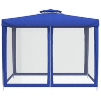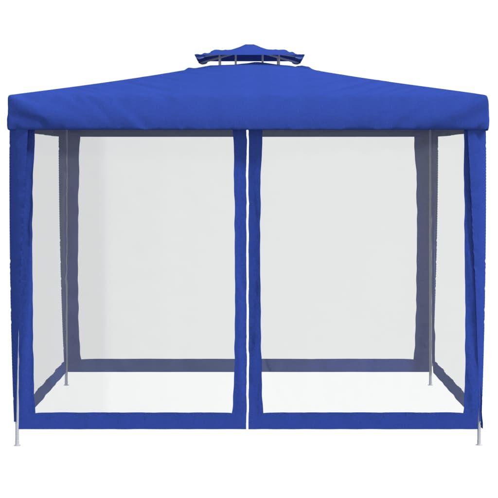 $134.99This gazebo, featuring a water-resistant double roof and four mesh sidewalls, is an ideal shelter from the sun. Durable material: Polyester is a synthetic material known for its UV resistance and its tensile strength. Polyester is water-resistant, which makes it the perfect choice for humid or rainy conditions, and is also easy to clean.Sturdy construction: The steel frame of this pavilion ensures sturdiness and stability.Great protection: The marquee with 1 double roof and 4 mesh sidewalls provides great protection from the sun, rain, and wind, making it a great option for outdoor events.Practical design: One of the side walls has a zipper for entrance and easy access. Also, this event tent is easy to set up and take down.Versatile design: This shelter tent can be used for a wide range of purposes, from outdoor dining and entertaining to relaxation and meditation.