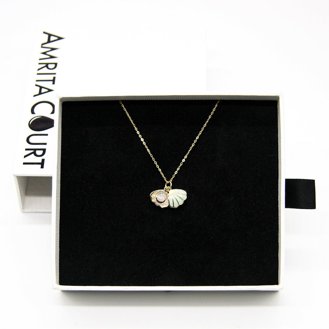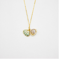 • 18k gold plated 925 silver chain and gilded green shell pendant