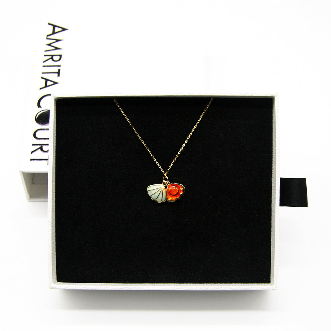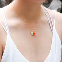 Gift Box - Aroma Necklace 925 Silver, Gold coated - Green Shell Sunset Coral (Bright Red Orange) + Purify Oil Blend
