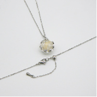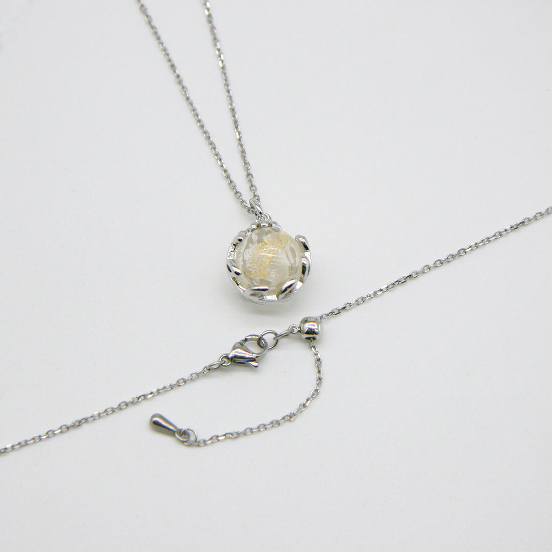 Serving as both a statement piece and a practical accessory, the glass ball doubles as a container for a drop of essential oil, allowing you to diffuse your favorite scent effortlessly on the go. Embodying beauty, versatility, and functionality, this necklace is a timeless addition to any ensemble, ensuring you feel happy, calm, content, and confident on all occasions.