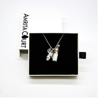 Crystal quartz, stainless steel, softwood and Murano glass beads