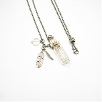 Our designer has smartly combined the beautiful crystal with the luxury of jewelry. On top of it, make it diffusing jewel when you walk around with your favorite aroma, beauty and energy. Using the tool contained, the delicate crystal bottle necklace?is used to store a few drops of essential oil which will diffuse gently through softwood to create an atmosphere of protection and aroma when you are on the go.