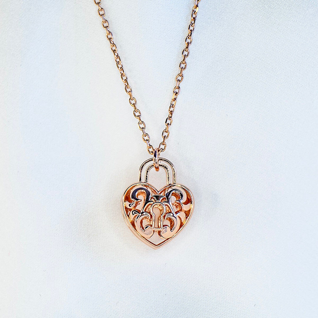 Gift Box - Heart Lock Rose Gold Aroma Necklace + Purify Oil Blend