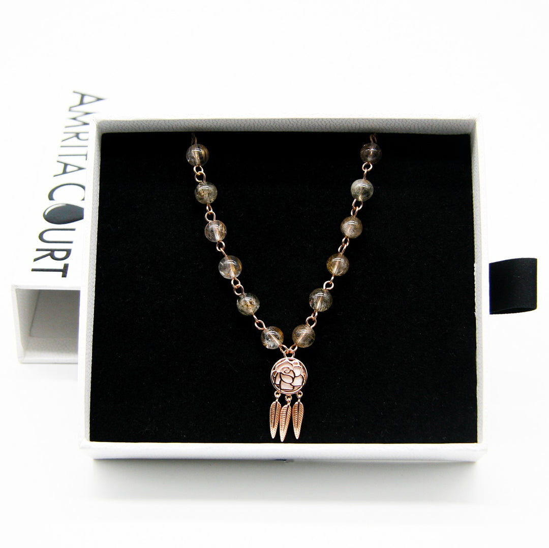 Gift Box - Rose Rose Gold Aroma Necklace + Purify Oil Blend