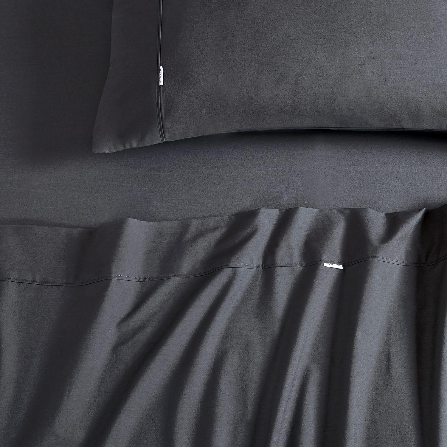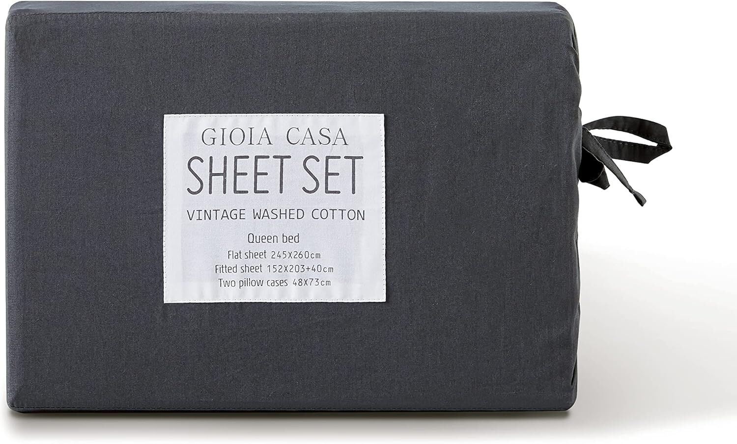 Vintage Washed 100% Cotton Sheet Set with 2 Pillowcases - Charcoal - Queen Size