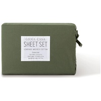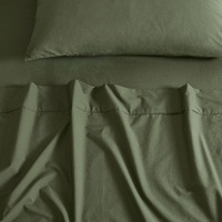 Vintage Washed 100% Cotton Sheet Set with 2 Pillowcases - Khaki Green - King Size