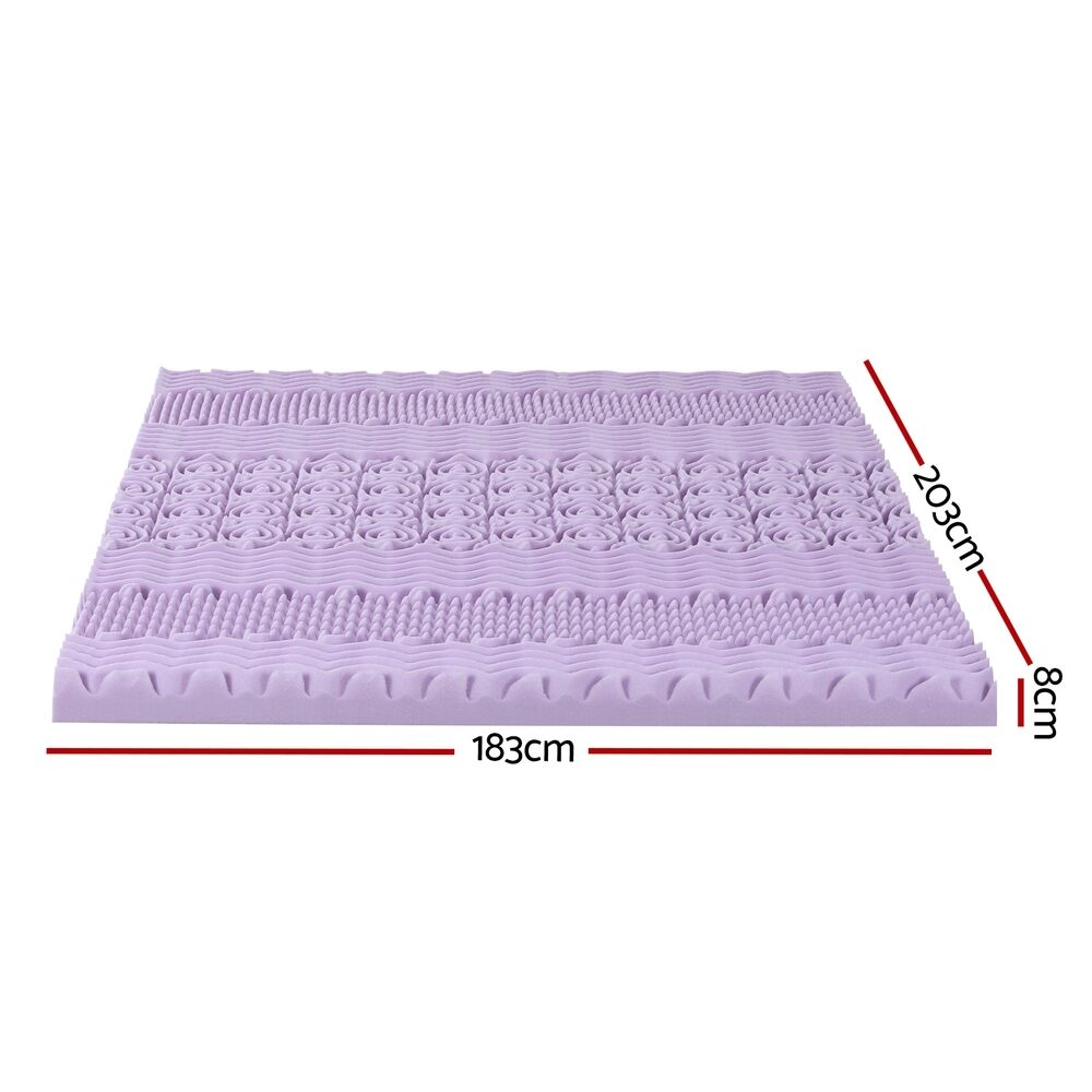 Transform your bed into a haven of comfort with the Giselle Bedding 8cm Memory Foam Mattress Topper. Infused with calming lavender, the plush memory foam promotes deeper relaxation and restful sleep. Its 7-zone contoured design targets key pressure points, ensuring customised support for your head, shoulders, back, hips, and legs.