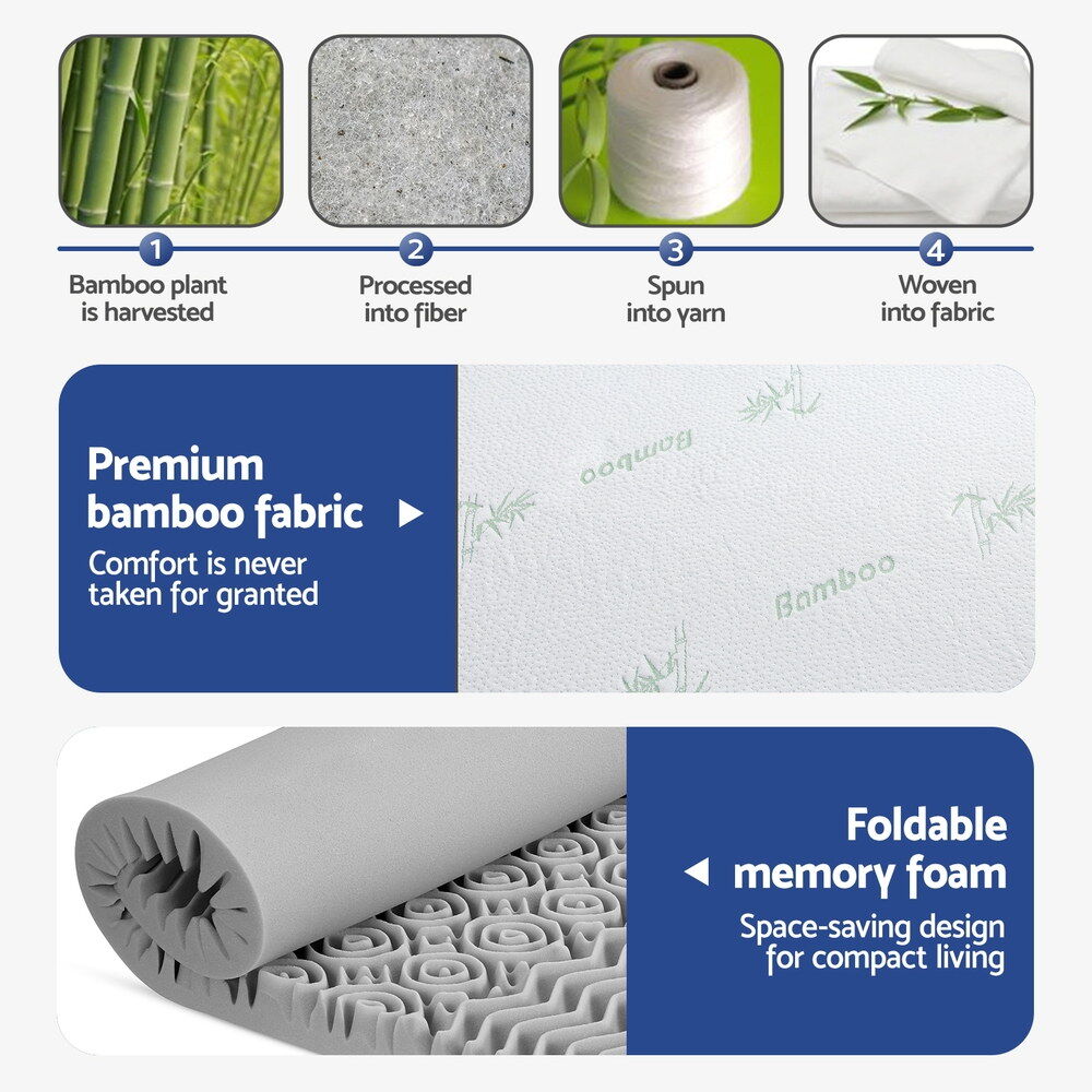 Experience elevated comfort with Giselle Bedding's 8cm graphite-infused memory foam mattress topper. Its 7-zone contoured surface with open cell structure improves airflow, while the memory foam offers lasting support and over 1000 contact points. Finished with a removable bamboo fabric cover and anti-skid base
