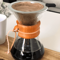 Made from the highest quality borosilicate glass, it has a capacity of 400 mls and comes with a reusable stainless steel strainer.