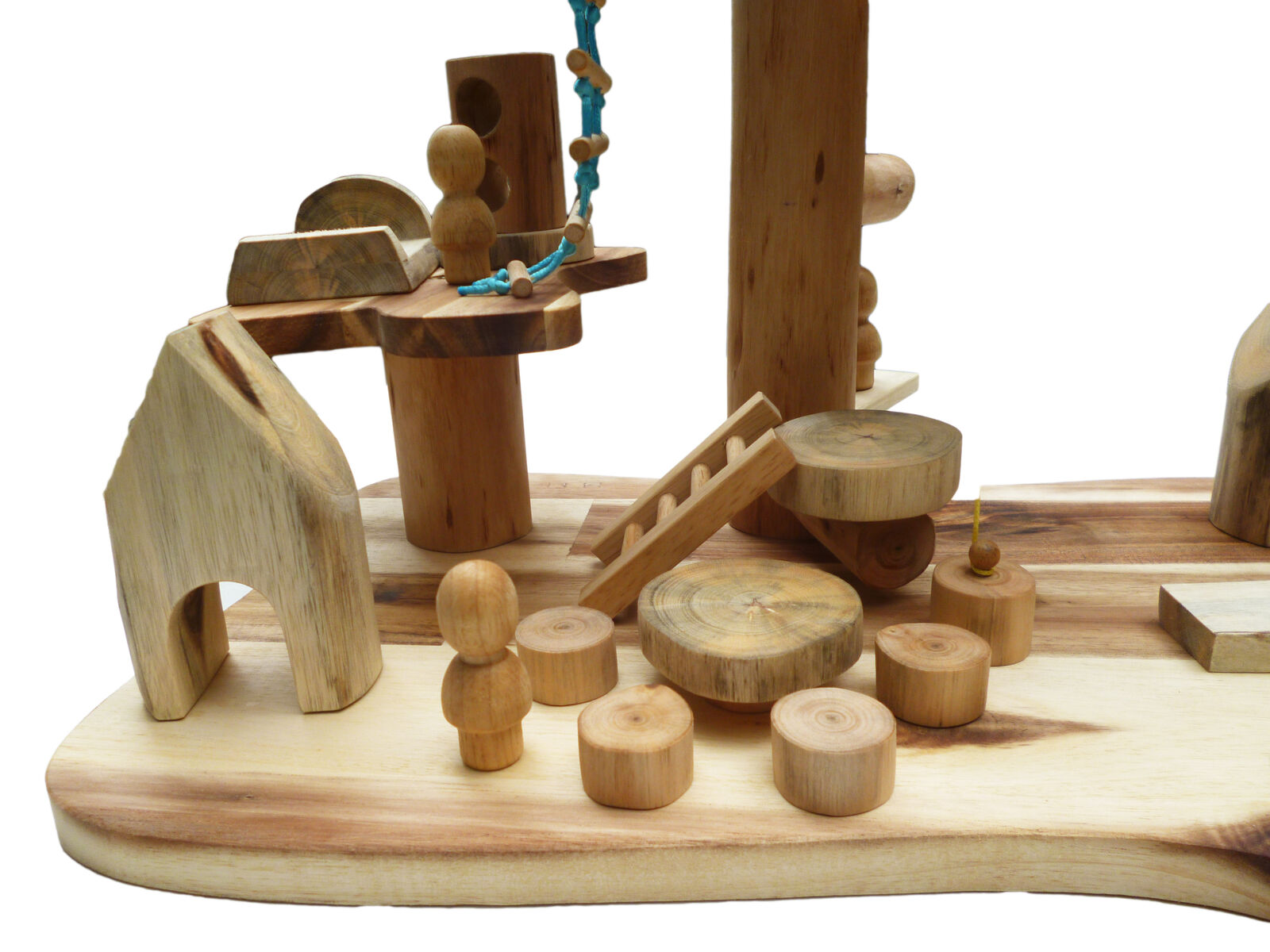 The multi levelset comes with 4 wooden figues and assorted furniture.