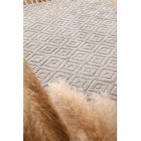 Tribal: Complete any setting with this hand made rug. Soft, lustrous wool yarns are hand-tuftedto create contrasting textures including oversized loops and flat surfaces that are rich in dimension, beautifully styled with classic geometric patterns. Crafted using a 70% wool and 30% Polyester blend, this rug will accent any space with its calm and neutral colour palette making it the perfect choice to add the finishing touch to any room in the house.