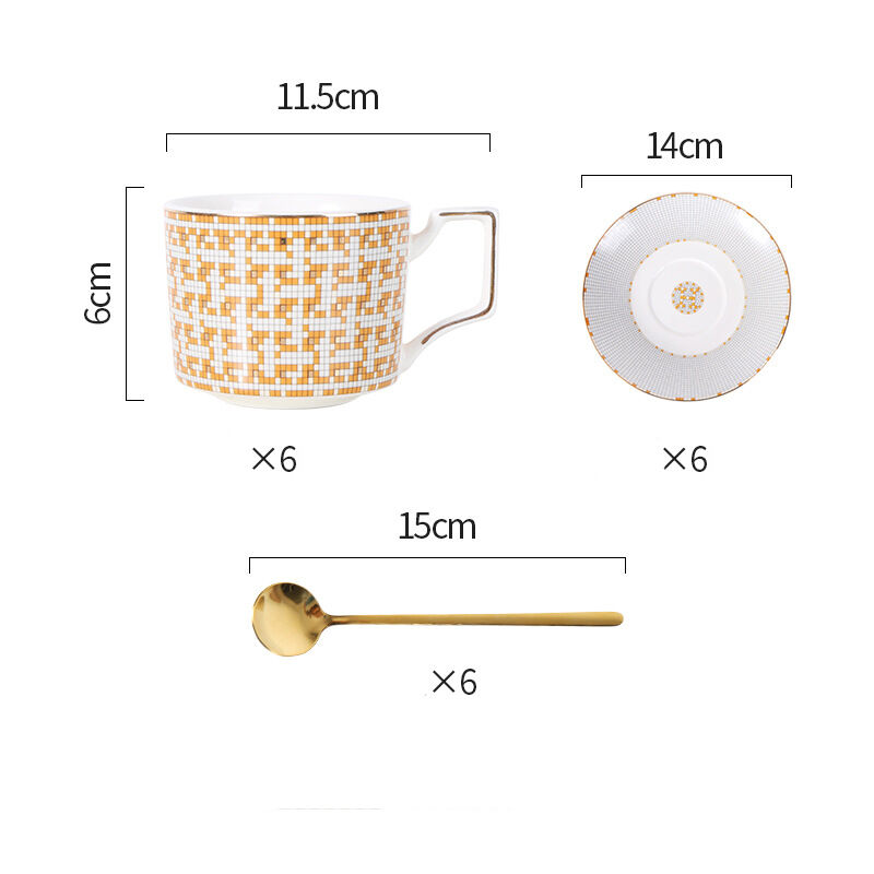 Package includes: 6x cups, 6x spoons, 6x saucers