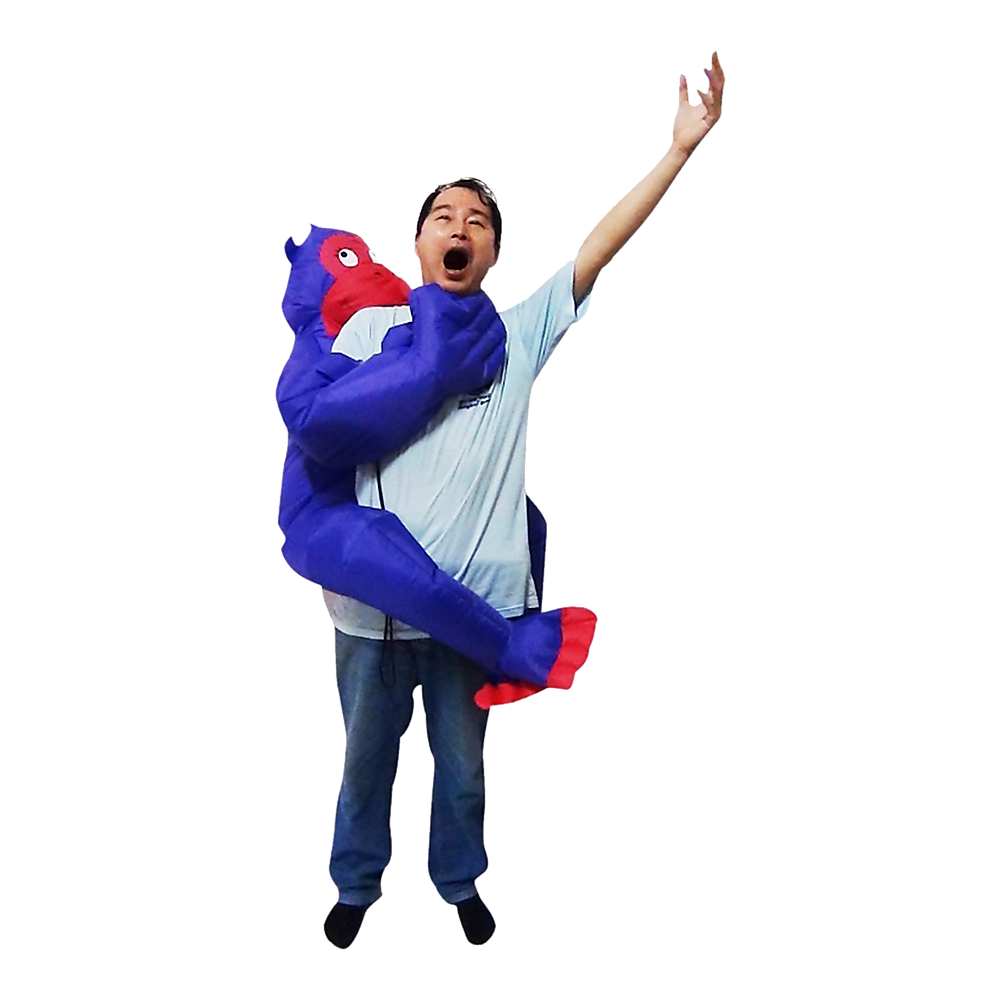 Liven up the next party with our blue and red furry friend. This Inflatable Gorilla costume will be the center of attention and a good time will be had by all. Your gorilla friend will be a roaring success!