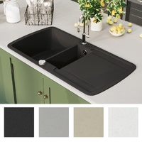 $480.80This contemporary kitchen sink with drainer has a clean, sleek design, and will make a versatile addition to your kitchen. Made of high-quality granite, this kitchen sink is scratch & impact-resistant and highly durable. It is also dirt-repellent and stain-resistant, thus easy to clean. This kitchen sink is heat-resistant up to 280 °C. This kitchen sink is a space saver that will leave you more counter space. The side drainer gives you extra space for your dishes, and as the sink is fully reversible, it can be fitted either to the left or the right of the basin. A hole cover is included in delivery to help cover the extra sink hole with ease. Delivery also includes the basket strainer waste kit for easy debris removal. Warning:Installation: Subjected to the requirements of the applicable regulatory authority and associated reference standards as applicable at the time.Good to know:Care and maintenance: Clean with water and non-abrasive soap only. Do not use vinegar, abrasive or acid detergents. Do not use scouring pads, steel scrubbers or metal cleaning products. Avoid hitting the product with sharp or heavy objects, such as knives, pans, cooking pots or plates. Do not wash in dishwasher.