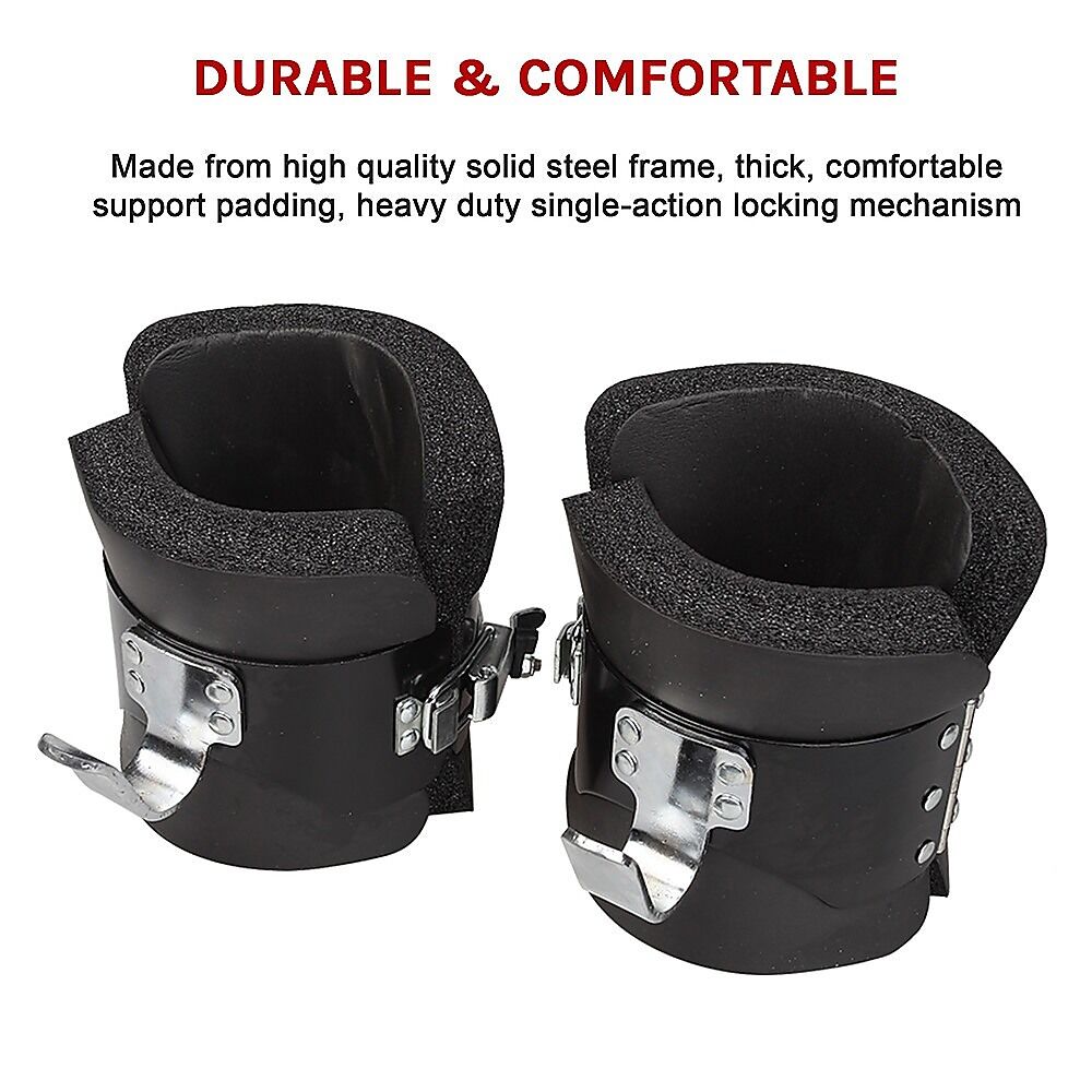 The solid steel construction and secure single-action safety-lock makes our inversion boots safe and reliable. They are durable and sturdy and built to last! The boots are made comfortable by the contoured support pads that protect your ankles and legs. These boots can be used with an inversion table for complete spinal decompression and for a full-range of inversion stretching exercises.