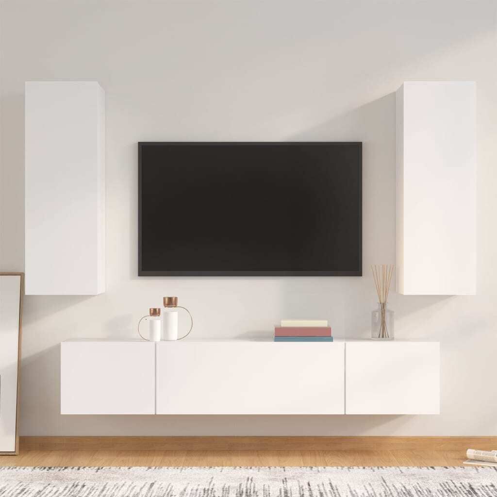 $195.29This classic TV cabinet set is designed to be a focal point of your room, featuring a trendy yet practical design. Sturdy material: The engineered wood is of exceptional quality with smooth surface and also features strength, stability and resistance to moisture.Ample storage: Each TV stand provides ample storage space to keep all your magazines, DVDs and any other items well organised.Wall-mounted design: The TV unit doesn't take any floor space. You can hang it on the wall easily. Note:Screw(s) and plug(s) for inside the wall are not included. Seek and use screw(s) and plug(s) suitable for your walls. If you are uncertain, seek professional advice. Read and follow each step of the instruction carefully.Each product comes with an assembly manual in the box for easy assembly.