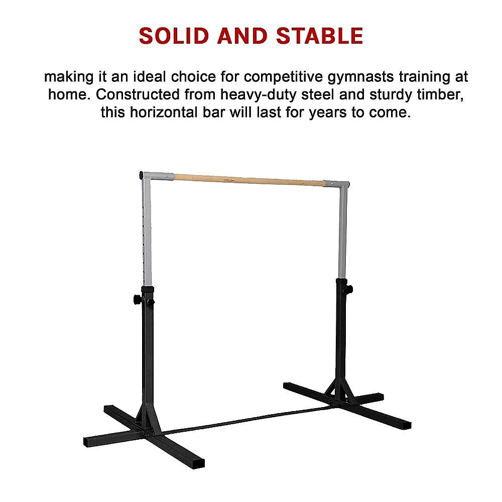 From beginners to more advanced youth gymnasts, this stable bar can support a variety of exercises. Kids who aren't gymnasts, too, will enjoy swinging on this horizontal bar, inventing tricks limited only by their imagination. Keep your children entertained and active with no worries about safety. Its professional-grade quality and double-locking safeguard system can support weights up to 150kg. End caps crafted from soft rubber keep the structure stable on the floor.
