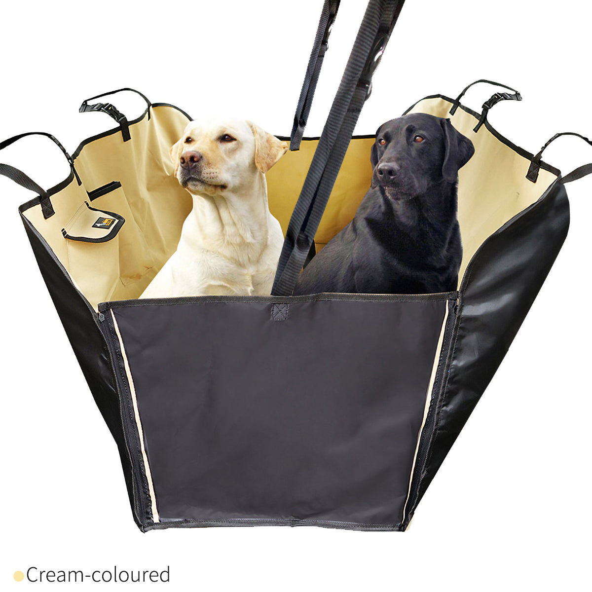 2-layer material protects back seat from scratches, dirt, spills, hairs and other messes. Pockets included for toys, snacks, leashes, etc.