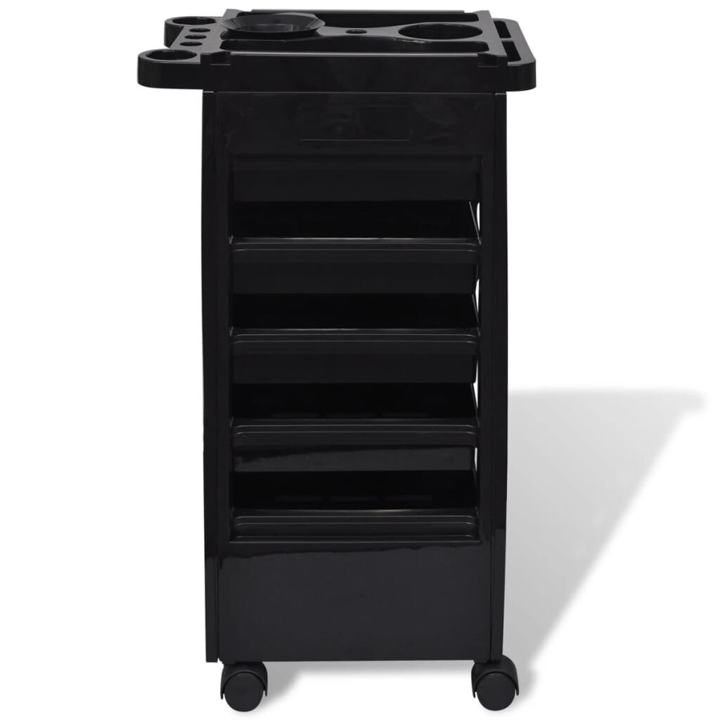 $119.69This trolley will be a great choice to keep your tools organised and tidy, perfect for beauty salons, tattoo shops, pet groomers, nail technicians and other professionals. This trolley offers everything you would expect from a high quality salon cart. It has a simple, yet stylish design and comes up with a total of five divided drawers for your tools and accessories. The top tray has integrated holders for hair dryers and side holders for spray bottles. The trays below are made of strong plastic and can be pulled in and out effortlessly. The four castors allow you to easily move the trolley, and keep it within reach.