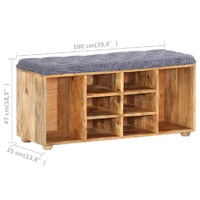 $327.74Add a touch of rustic charm to your home with this simple yet stylish storage bench! The hall bench is made of solid mango wood and fabric, making it durable and stable. The padded top can provide a soft seat for you. Additionally, this entryway bench is designed with 8 compartments, which provide ample space for keeping smaller items organised and within reach. Important note: The colour and grains may vary from piece to piece, making each piece unique. The delivery is random as well.