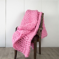 1 x Hand Knitted Chunky Blanket Thick Acrylic Yarn Blanket Home Decor Throw Rug - Grey