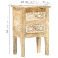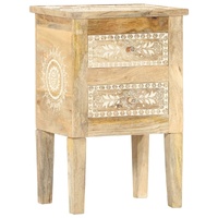 $206.99This vintage-style and practical wooden bedside cabinet will make a timeless addition to your home decor. The nightstand, with hand painted parts in the front, is handmade of solid mango wood which is a dense and robust hardwood featuring beautiful brown or golden streaks and contours on its surface. Every step of the process is carried out with the greatest care, be it polishing or lacquering, and the craftsmanship adds to the spectacular retro style. The beautiful wood grains make every piece of furniture unique and slightly different from the next. This bedside cabinet has a sturdy top, on which you can place a bedside lamp, alarm clock or anything else you might need near your bed. The drawers provide ample space for keeping all kinds of smaller items organised and within reach. This item is easy to assemble. Important note: The colours vary from piece to piece, making each piece unique. The delivery is random, ensuring the exclusivity and individuality of your product.