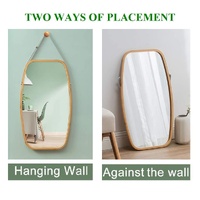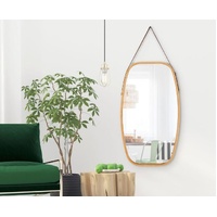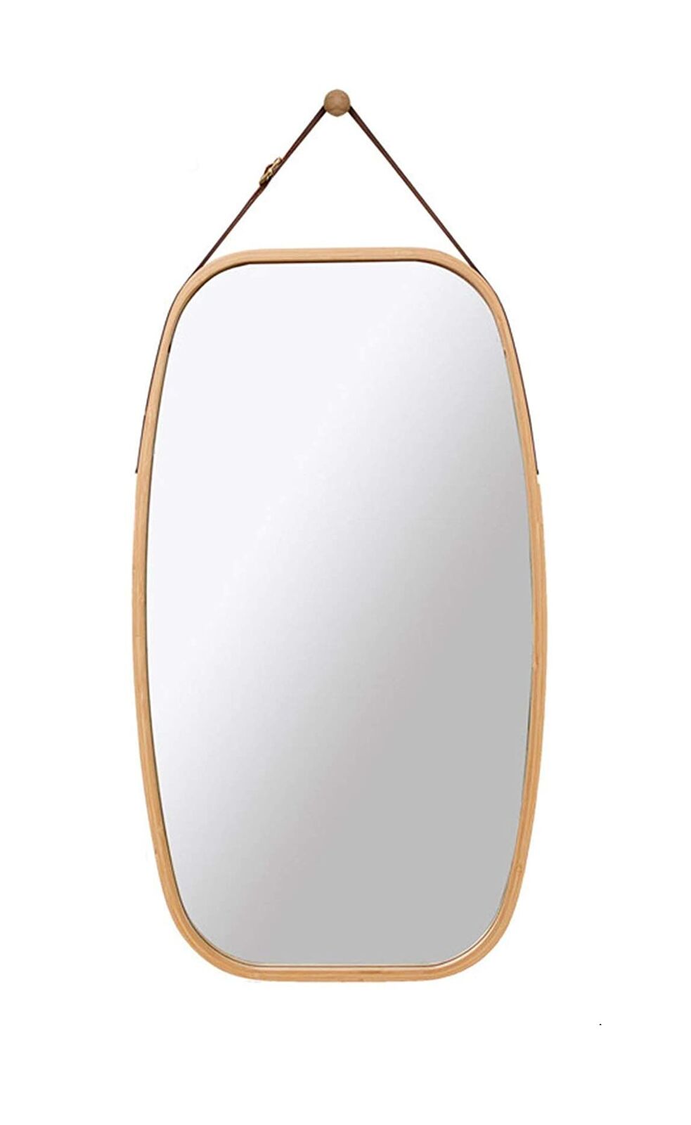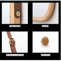 1 x Hanging Full Length Wall Mirror - Solid Bamboo Frame and Adjustable Leather Strap for Bathroom and Bedroom