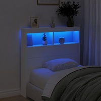 $134.99This headboard cabinet with LED, featuring a stylish design, gives your bed frame a stunning modern touch and is perfectly suitable in any bedroom. Durable material: The engineered wood is of exceptional quality with smooth surface and also features strength, stability and resistance to moisture.RGB LED lights: The bed headboard is equipped with vibrant RGB LED lights. With various customisable menus, you can effortlessly change the colour of the lights and even set them to adjust automatically. These LED lights not only enhance the contemporary look of the bed header but also add to its trendy appeal.Ample storage space: Featuring compartments and a sturdy top, the bed headboard cabinet is perfect for displaying your books, decorative items, picture frames and alarm clocks.Excellent support: The headboard for bed provides you with excellent back support when you sit up in bed to read or watch TV. Good to know:The delivery includes LED headboard only. The bed frame and mattress are not included. You can check our shop for the matching frames and mattresses.The product has a USB connector that requires a certified 5V USB power source (not included). Warning:To prevent it from tipping over, this product must be used with the provided wall attachment device.