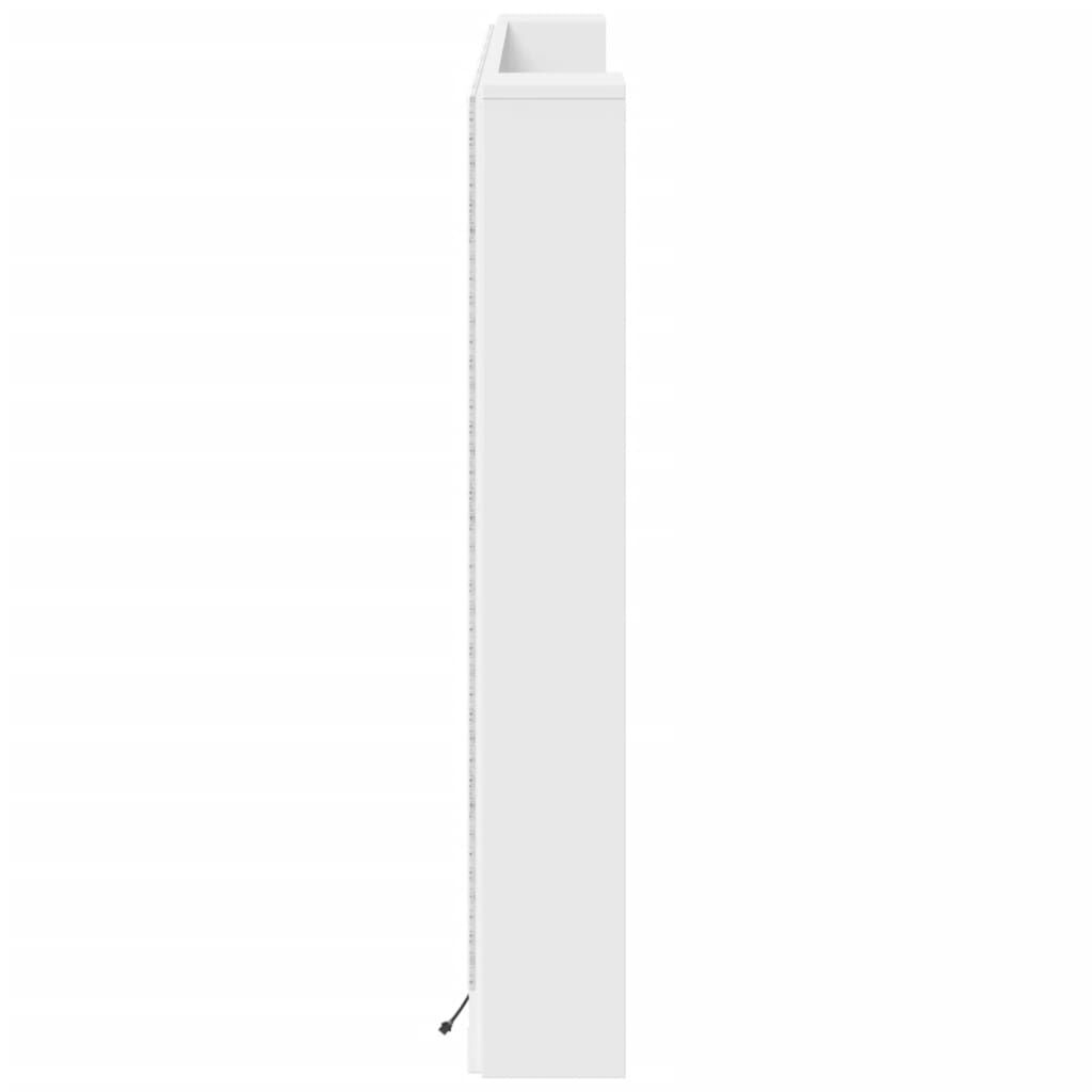 $159.29This headboard cabinet with LED, featuring a stylish design, gives your bed frame a stunning modern touch and is perfectly suitable in any bedroom. Durable material: The engineered wood is of exceptional quality with smooth surface and also features strength, stability and resistance to moisture.RGB LED lights: The bed headboard is equipped with vibrant RGB LED lights. With various customisable menus, you can effortlessly change the colour of the lights and even set them to adjust automatically. These LED lights not only enhance the contemporary look of the bed header but also add to its trendy appeal.Ample storage space: Featuring an open shelf, the bed headboard cabinet is perfect for displaying your books, decorative items, picture frames and alarm clocks.Excellent support: The headboard for bed provides you with excellent back support when you sit up in bed to read or watch TV. Good to know:The delivery includes LED headboard only. The bed frame and mattress are not included. You can check our shop for the matching frames and mattresses.The product has a USB connector that requires a certified 5V USB power source (not included). Warning:To prevent it from tipping over, this product must be used with the provided wall attachment device.