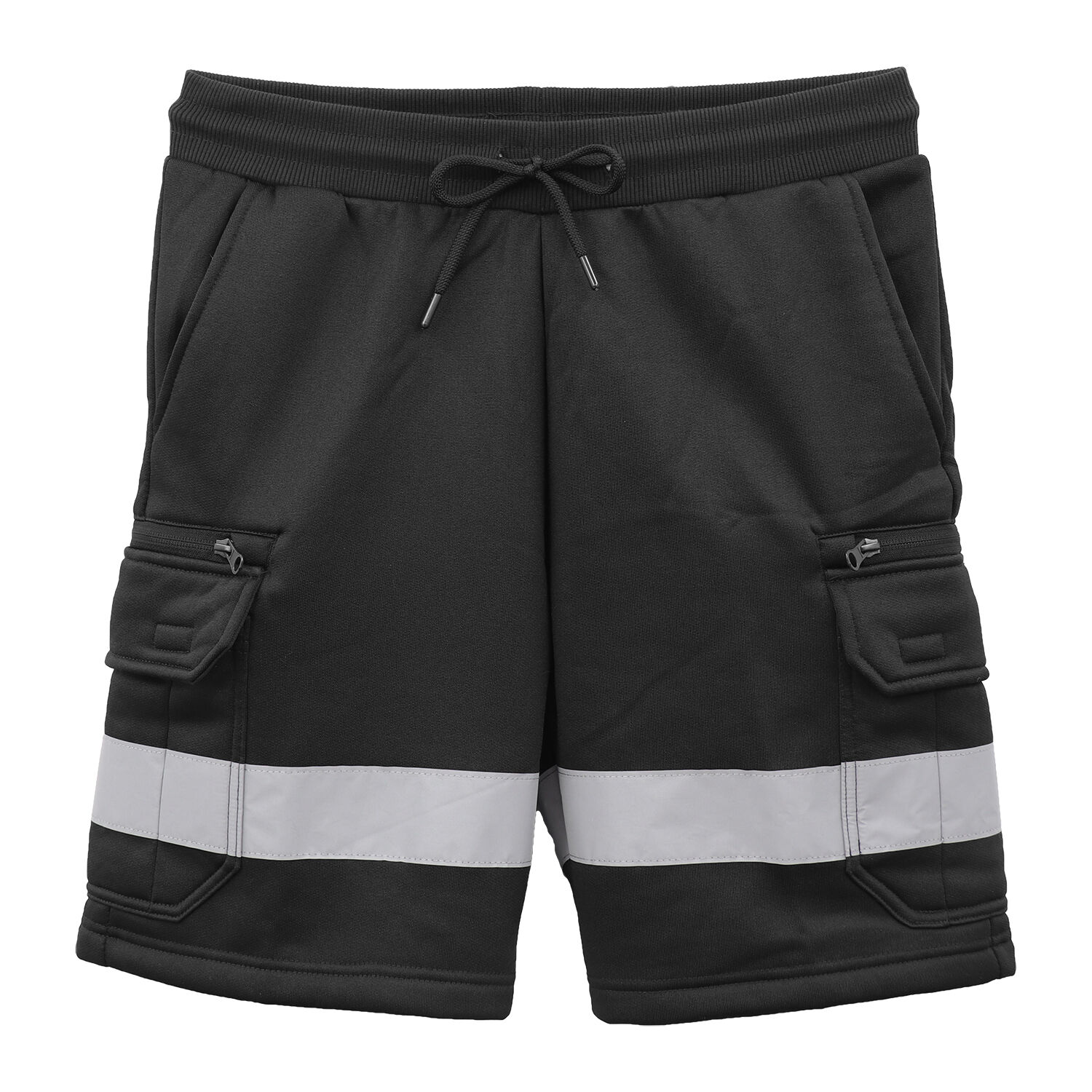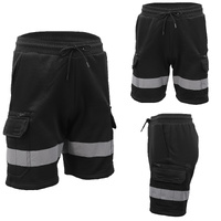 Hi Vis Fleece Work Cargo Shorts w Reflective Tape Workwear Tradie Utility Pants, Black, M