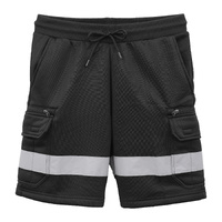 Hi Vis Fleece Work Cargo Shorts w Reflective Tape Workwear Tradie Utility Pants, Black, XL