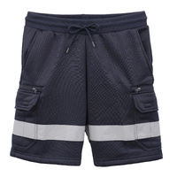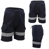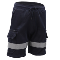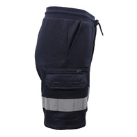 Hi Vis Fleece Work Cargo Shorts w Reflective Tape Workwear Tradie Utility Pants, Navy, L