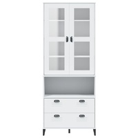 Are you hunting for a stylish highboard? This highboard adds an elegant charm to your existing interior! Solid pine wood: Solid pine wood is a beautiful natural material. Pine wood has a straight grain, and the knots give the material its signature, rustic look. Made of solid pine wood, the cabinet is durable and sturdy.Ample storage space: The sideboard provides ample storage space for keeping your various daily essentials well-organised and within easy reach.Glass doors: The doors of this wooden cabinet top have increased robustness and safety thanks to their tempered polished glass. And it allows you to see inside the top half to display items beautifully.Practical handles: The storage cabinet comes with handles that make it easy to open and close the cabinet while adding extra beauty. Warning:To prevent it from tipping over, this product must be used with the provided wall attachment device.