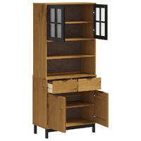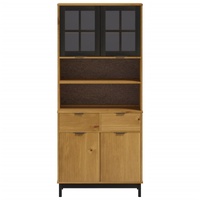$437.39This wooden highboard is the ideal solution for your storage needs. Solid pine wood: Solid pine wood is a beautiful natural material. Pine wood has a straight grain, and the knots give the material its signature, rustic look. Made of solid pine wood, the cabinet is durable and sturdy.Ample storage space: With shelves, drawers and glass doors, the tall cabinet offers plenty of storage and display options for your favourite items.Easy to maintain: The storage cabinet is easy to clean with a damp cloth and requires less maintenance.Convenient handles: The high sideboard comes with black handles that make it easy to open and close the cabinet. Warning:To prevent it being overturned, this product must be used with the provided wall attachment device.