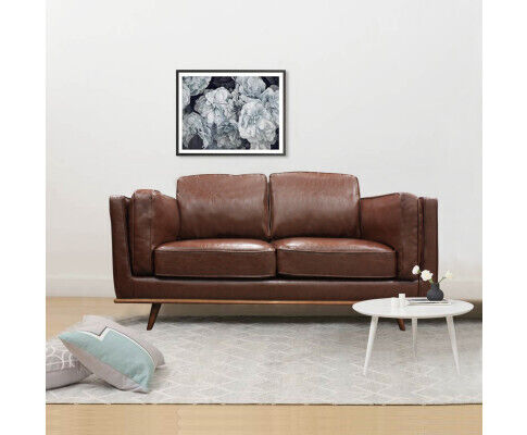 Hinesville Faux Sofa Brown Lounge Set for Living Room Couch with Wooden Frame