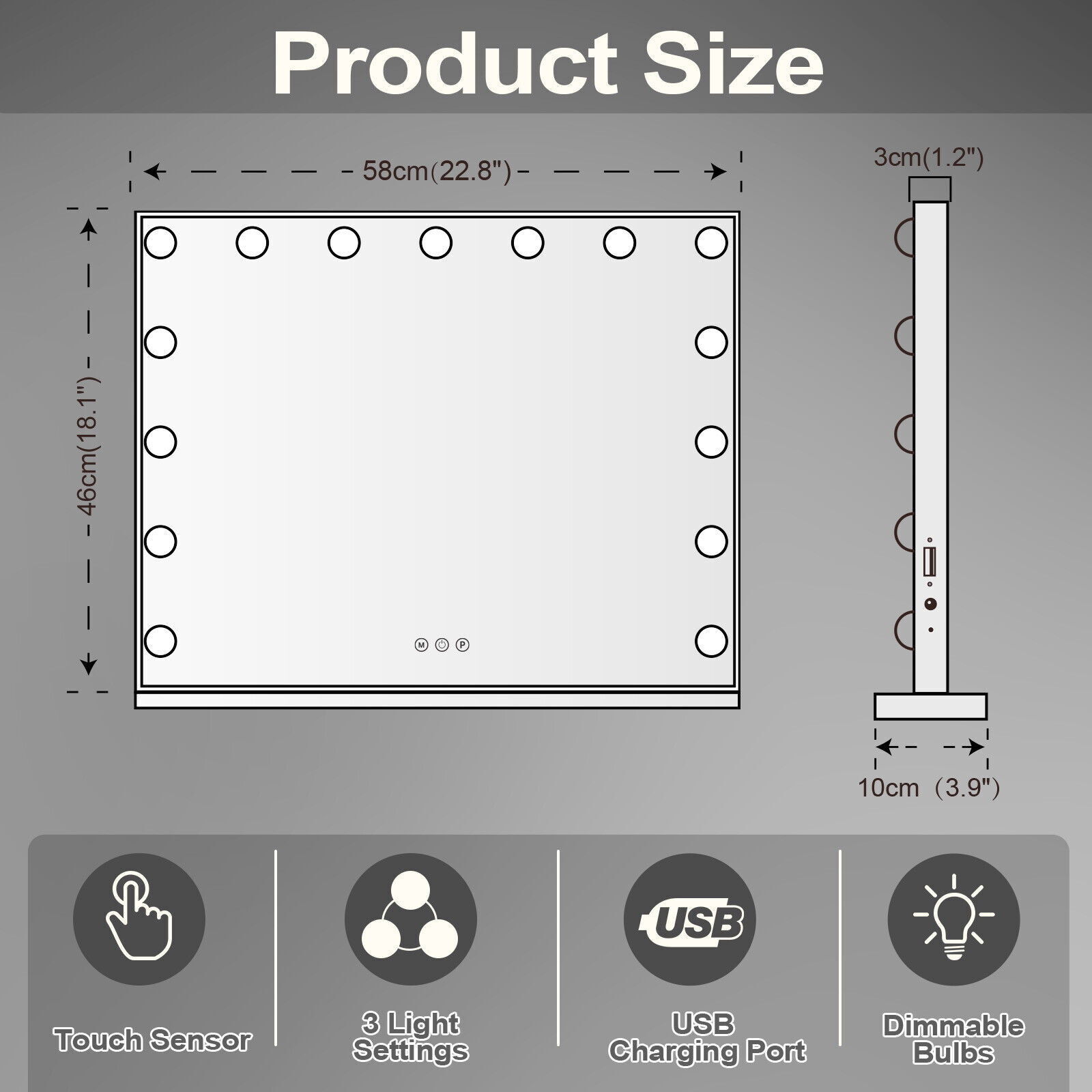 Hollywood LED Vanity Mirror Rectangle White Silver Wall Mirror