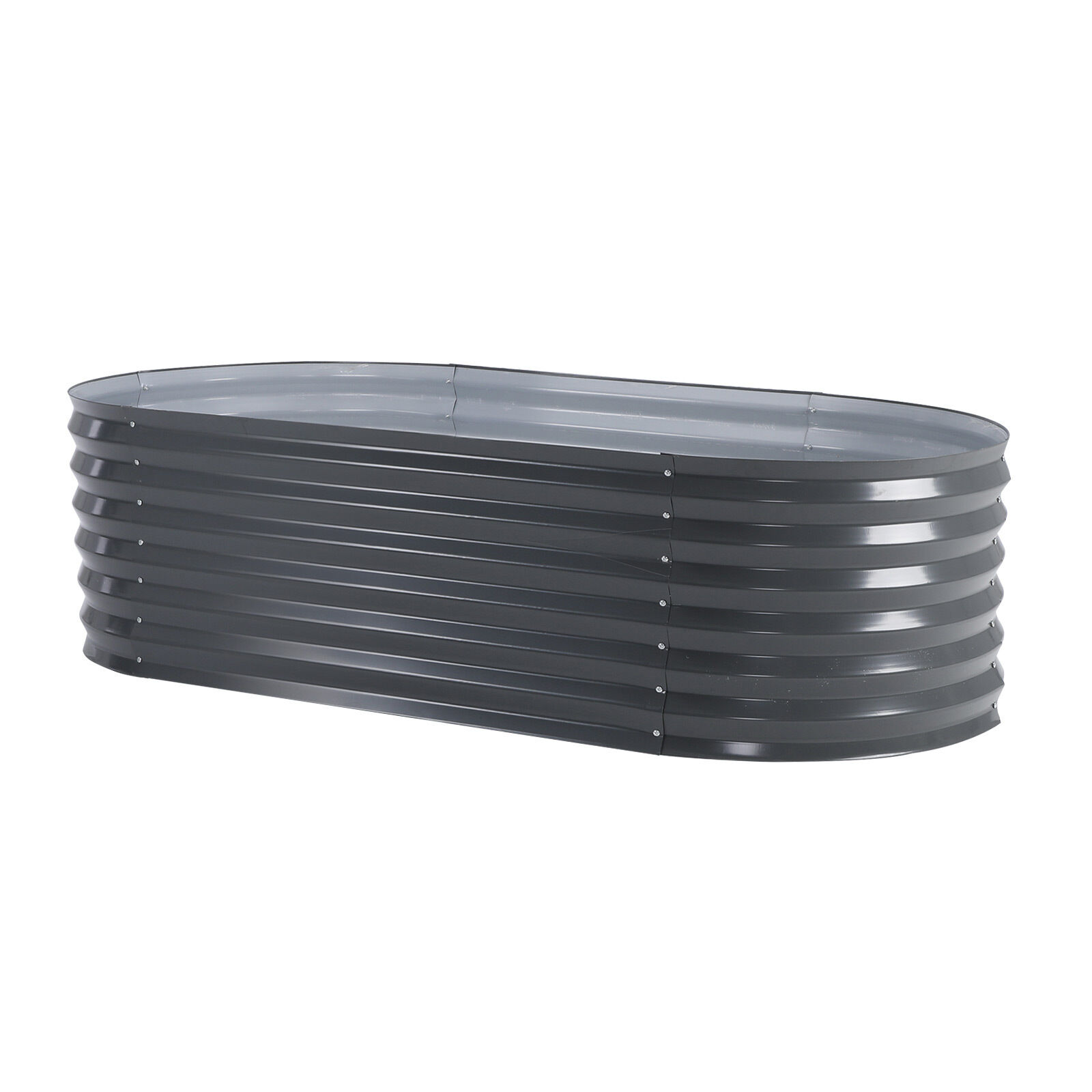 Home Ready Raised Garden Bed Galvanised Steel Planter Oval Grow Plant Veggie Flowers 160 x 80 x 45cm - Grey