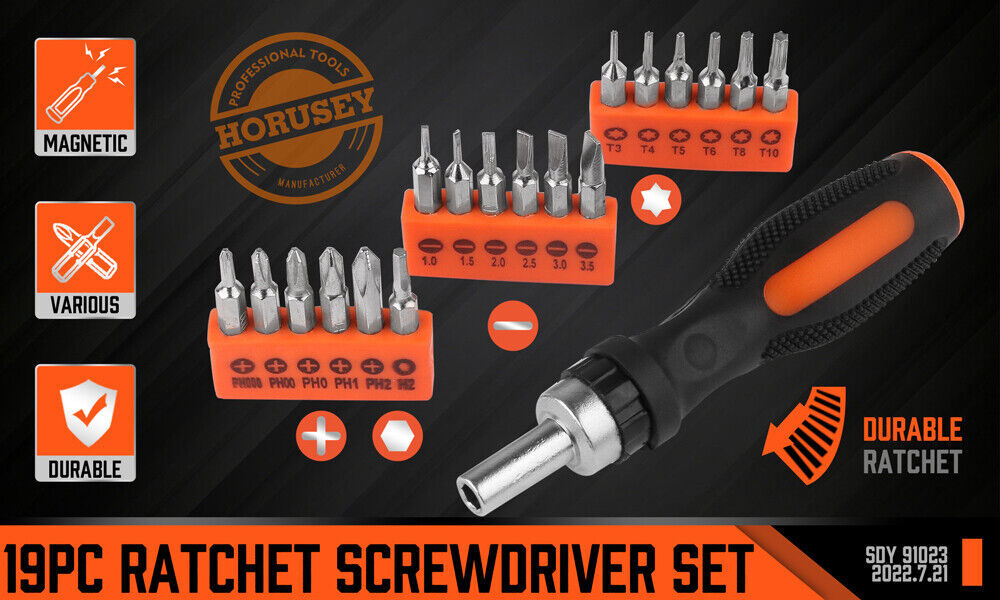 HORUSDY 19 Pcs Ratchet Precision Screwdriver Bits Set Slotted Phillips Tox Hex